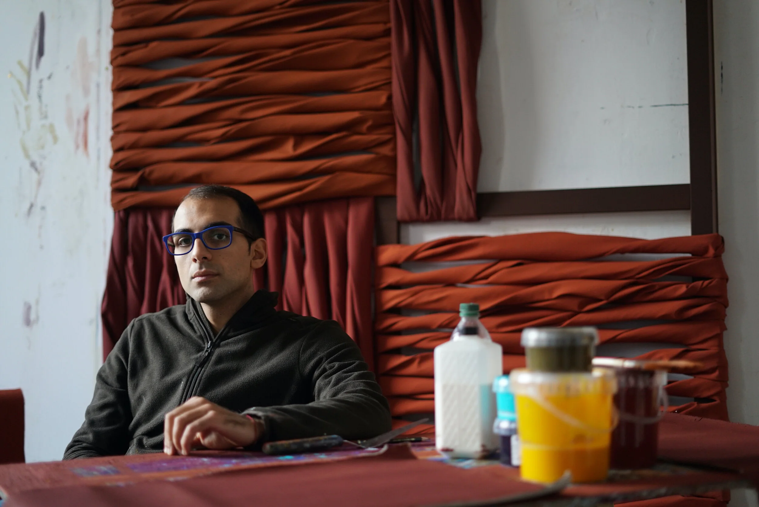 Bislacchi has been investigating and experimenting with the canvas's potential since his professional artistic education in fine arts at the City & Guilds of London Art School, where he graduated in 2018. The most significant influences of his artistic production are related in the 1950s and 1960s, particularly in Italian Informal Art, Abstract Expressionism, and Arte Povera, when artists began to question the formal presentation of painting and its purpose. Since his first artistic production, he has developed the interest and curiosity to manipulate the traditional support of painting. Experimenting with new possibilities of using the canvas, Bislacchi rethought the painting's idea by concentrating his investigations on the making processes, escaping from the realm of representation and the picture's physical constrictions. If Lucio Fontana cuts the canvas support, Bislacchi reconstructs it through motives, making it an integral part of the artistic process. The Wall of Canvas series develops from this idea of reconstruction and recreation. As the title suggests, the creative process refers to the symbolic construction of the canvas wall through hand-twisted strips of painted canvas that individually stretched over the painting's support according to vertical or horizontal arrangements. Reconstructing the painting from scratch, Bislacchi translates it into a symbolic construction model that he strongly associates with the idea of a mural structure made with canvas and paints instead of lime and brick. The series is born from one of his most significant experiences, a one-month residency program at PADA Studios near Lisbon, Portugal.