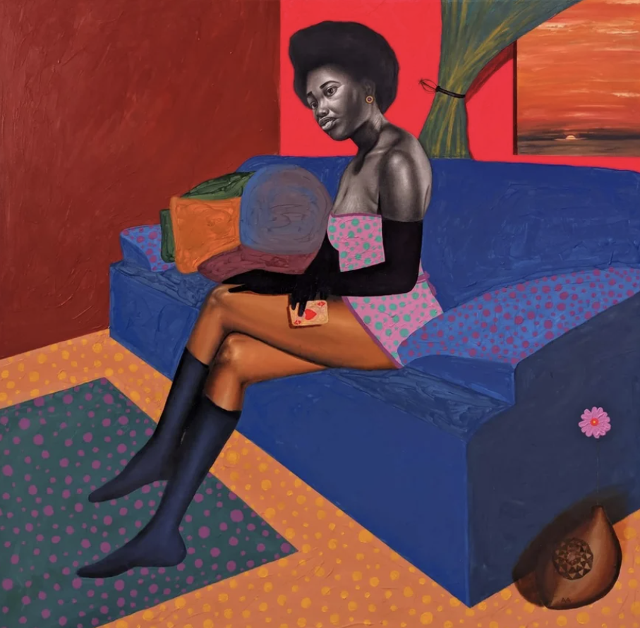 BY: Yes, my use of colour has always been very intentional. I try to portray the Black figure as someone present in time, someone experiencing time. In the past few years, my works have been very vibrant and bold. But more recently, I have also begun to calm the palette a bit. I want viewers to look at a piece and feel ease in whatever they are experiencing.
