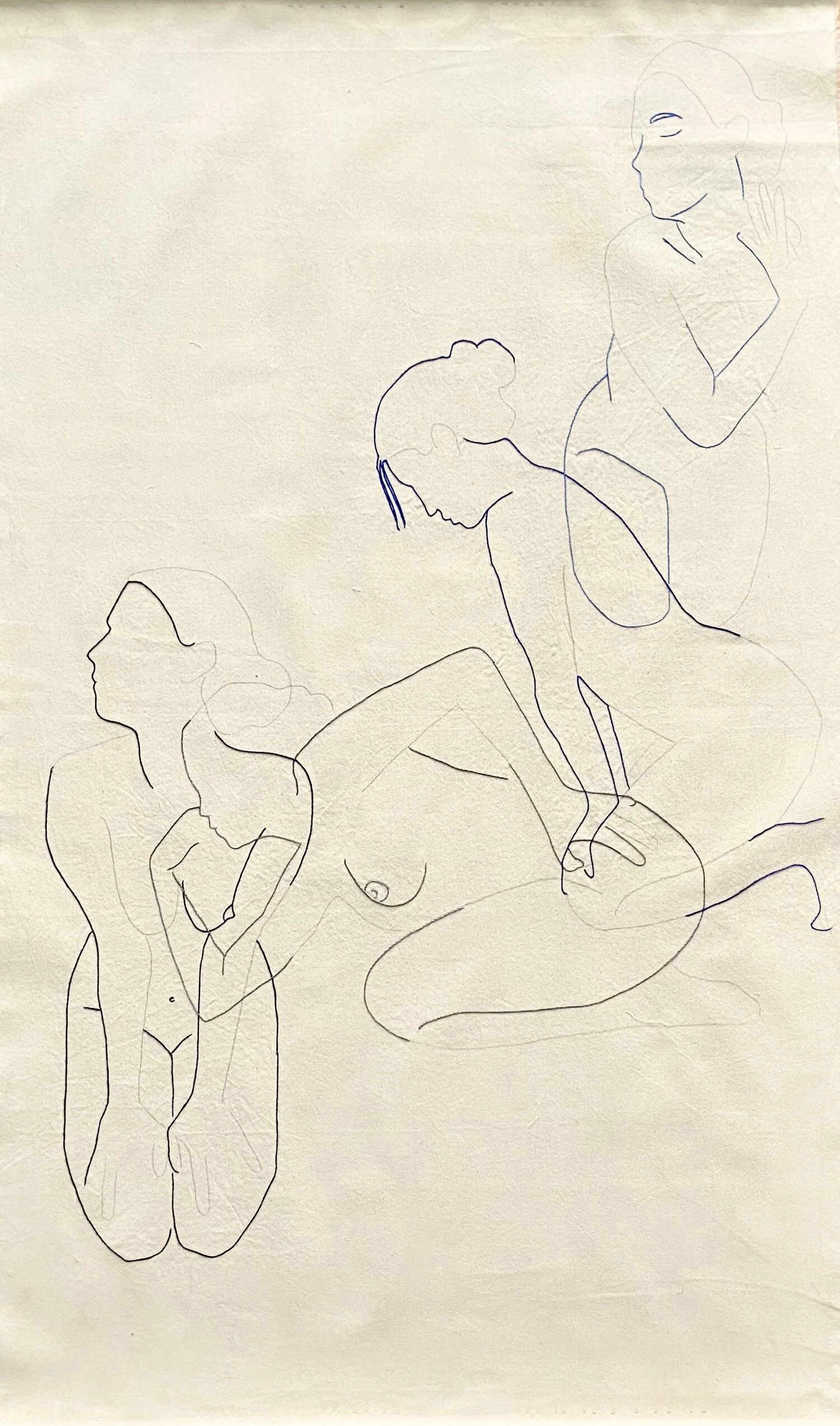 Mariana Gómez, Woman Between Strokes and Stitches series, 2021. Embroidery on canvas and pencil, dimensions variable.