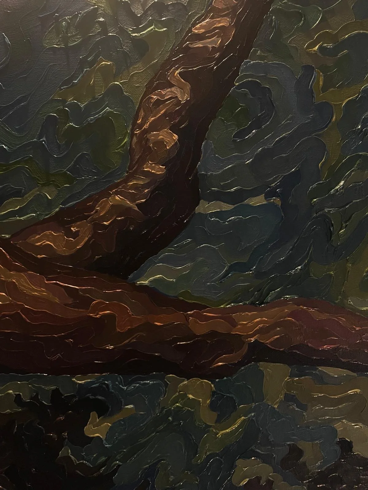 For McGowan, painting has always been a release. “It’s where I feel whatever’s going on in my life,” she says. Her canvases carry that emotional immediacy. Sweeping curves and thick ribbons of impasto rise and fall across their surfaces, echoing breath and movement, pulse and pause. The brushwork, simultaneously sculptural and fluid, embodies the very essence of her invented movement: Wavism.