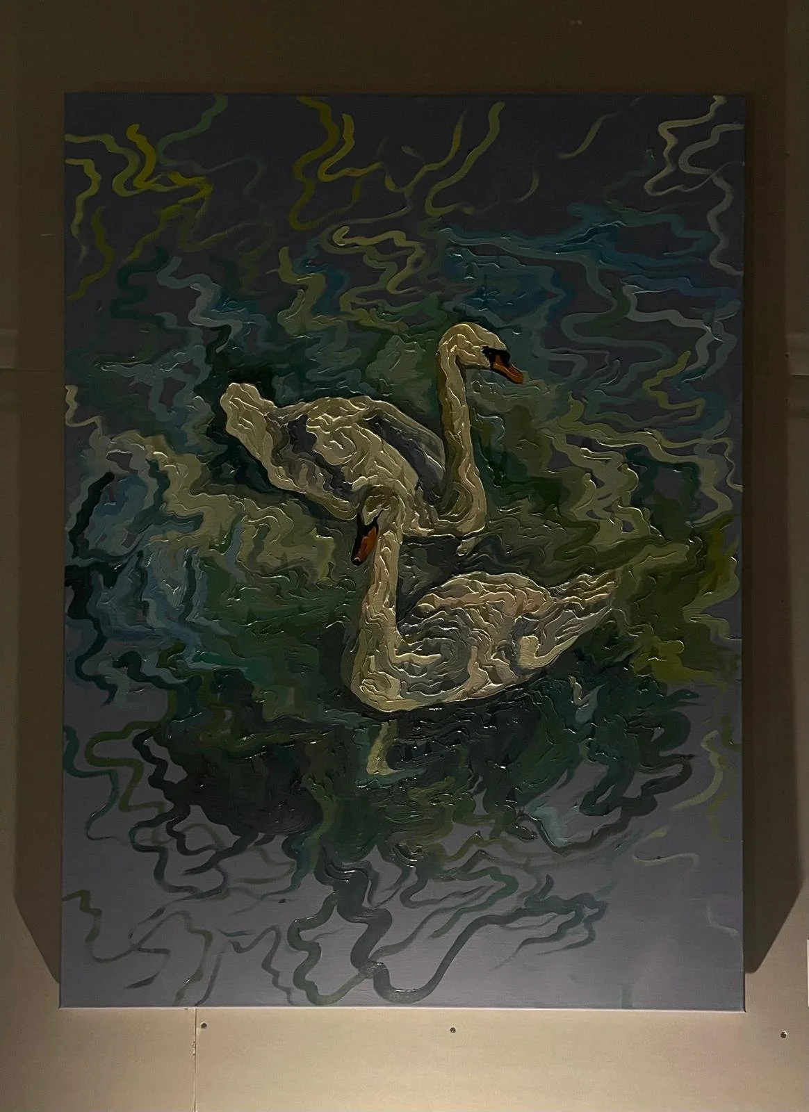 In Wavism, each stroke is part of a dance. McGowan moves with the brush, stepping back and forth as layers build and merge. The outcome is never predetermined; what emerges is guided only by presence. Her lines curve and intersect, never confined by edges or rules. There is no attempt to “stay within the lines”, rather, there is a celebration of flow, of movement. In these waves of paint, one senses both spontaneity and control, the balance of intuition and intention. As McGowan puts it, “I wanted the pieces to hold that duality—something calming but also quietly dynamic.”